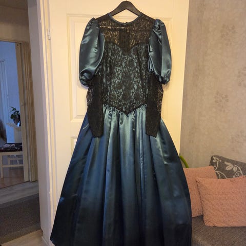 Vanha, mutta ehjä mekko. Käy esim 50-lukuun hurahtaneille tai vanhojen tansseihin. Päällinen harsoa, alla silkkimäinen alusosa.