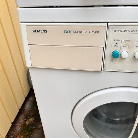 Annetaan uuden tieltä toimiva, mutta äänekäs, pienikokoinen sivusta täytettävä pyykinpesukone. Kätevä esim. kerrostaloasuntoon.