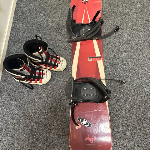 Lumilauta ja siteet. Pohja on hyvässä kunnossa, mutta päällä kulumaa(kuva3). Puh: 044 2300197