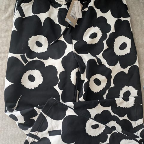 Myydään Marimekko Kioskin collegehousut koossa L. Vyötärönympärärys venyttämättä on noin 93 cm ja haara-lahjepituus noin 70 cm. Käyttämättömät, laput vielä kiinni.