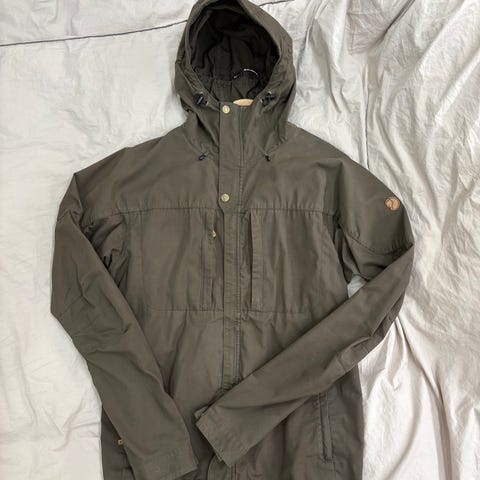 Miesten XL kokoinen Fjällräveninhä huippu kolmikerros kuoritakki. Ostettu (uudenveroisena ja virheettömänä) käytettynä, miltä ulkoisesti vaikuttaakin, mutta sisäpuolelta on saumojen teippauksia osittain irtoillut.