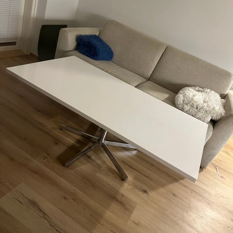 Myydään n. puoli vuotta sitten ostettu sohvapöytä. Kunto erinomainen. Ovh 239€. Mitat leveys 80cm, korkeus 45cm