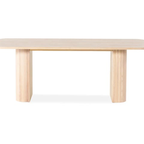Kopparbo-ruokapöytä on tyylikäs huonekalu, joka sopii moderniin kotiin. Pöytä on valmistettu MDF:stä ja puuviilusta ja siinä on trendikkäästi paneloitu jalka.