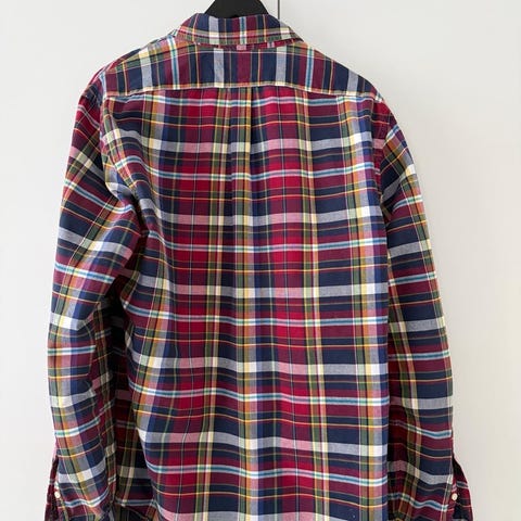 Ralph Lauren Polo L kokoinen valkoinen puuvillapaita miehille. Paidassa on button-down-kaulus ja pitkähihaiset hihat. Materiaali on puuvillaa, joka tarjoaa hengittävyyttä ja mukavuutta.