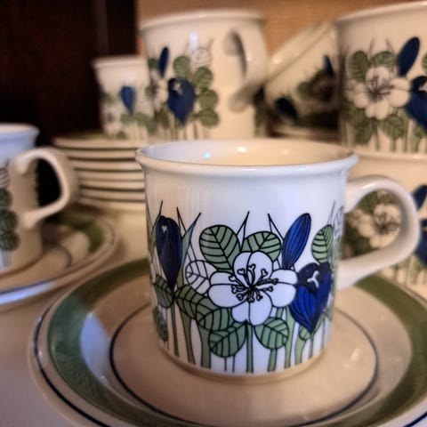 Iittala Iittalan Krookus Roosa nauha vaaleanpunainen vaaleanpunaiset uusi uudet käyttämättömät lahja lahjaksi rosa kahvikupit kahvikuppi kahvi kahvimuki kahvimukit kukka kukkia kukat