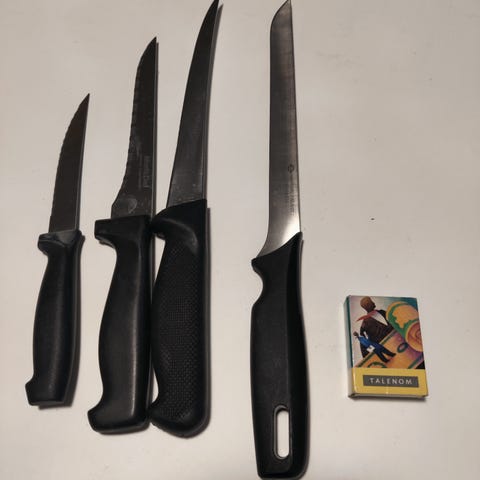 Vanhat kalaveitset, valmistaja Sorsakoski, ravintolahopeaa, parissa kaiverrus. 8 kpl. Voin lähettää.