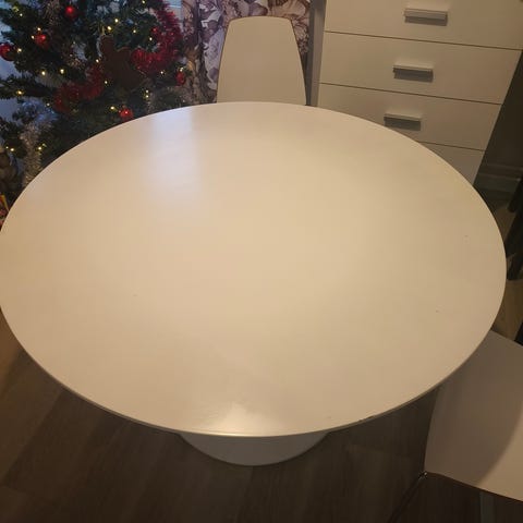 Myydään Ikeasta ostettu pyöreä ruokapöytä (halkaisijaltaan 85 cm). Erinomaisessa kunnossa, ei näkyviä käytön jälkiä.