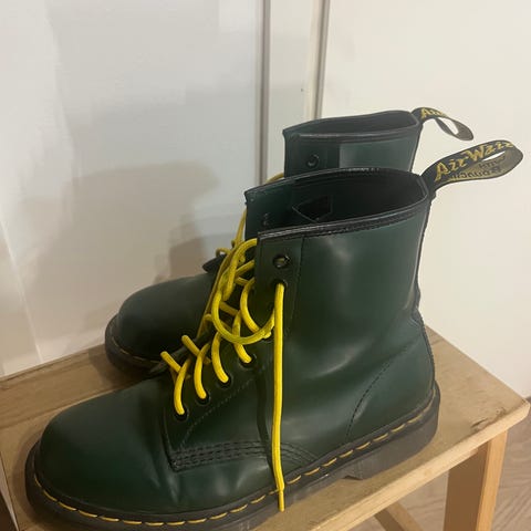 Vähän käytetyt Dr. Martensit, joissa on kuitenkin pientä käytön jälkeä, näkyy kuvissa.