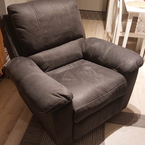 Vaalea nojatuoli irroitettavilla bemz pellavasekoite päällisillä.