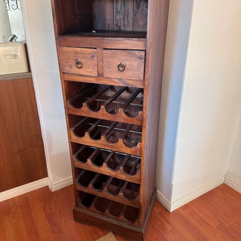 Hieno puinen viinihylly 8 pullolle.