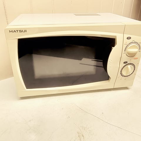 Matsui mikroaaltouuni valkoisella värillä. Laite sisältää perinteiset säätimet teho- ja ajastinasetuksille. Sisätilassa pyörivä lasialusta. Sopii kotitalouskäyttöön ruoan lämmitykseen ja sulatukseen.