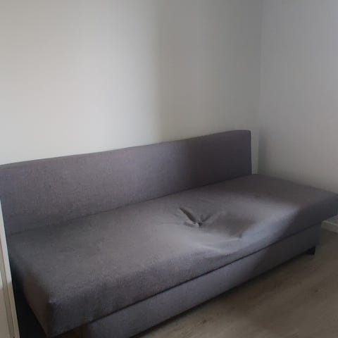Kahden istuttava vuodesohva.(ohut patja) tyynyt vetoketjulla, koiramme pentuna purrut sohvan kangasta,josta kuva. Voisi kangasliimalla korjata ottamalla irtotyynystä (eka kuva)samaa kangasta paikaksi,kuin sohva) kaunis "persikan" sävyinen.