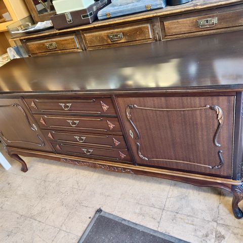Hyväkuntoinen pitkä tv-taso senkki, puhdas ja siisti. Design Pertti Salmi, tuotanto Vilka Oy.
