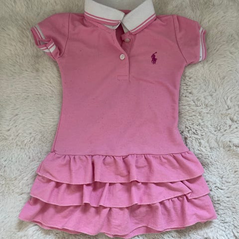 Ralph Lauren mekko tytöille, koko 86-92 cm eli 18-24kk. Mekko on tummanpunainen ja valmistettu puuvillasta.