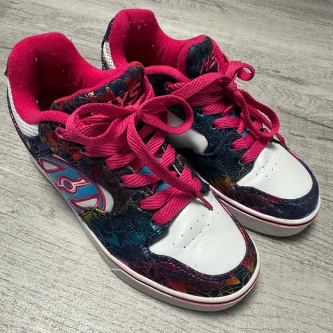 Heelys lasten rullakengät mustalla ja pinkillä värillä. Kengissä on pyörä pohjassa, joka mahdollistaa liikkumisen rullaten. Kengät sopivat lapsille ja niissä on kestävä pohja. Koko 35.