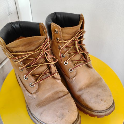 Punaiset Timberlandin syys/talvi/kevät kengät koossa 39. Käytönjälkiä näkyy (isoin jälki tumma tahra kärjessä, en ole yrittänyt putsata) mutta vielä ihan ehjät kengät seuraavalle. Sisäpuolelta kantapään kohdalta kangas kulunut.
