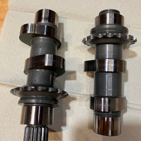 Kuvien mukaiset Harley-Davidson nokka-akselit, Screaming Eagle SE 259 E. Otettu pois 110 SE koneesta täysin toimivina, tuli vaan toisenlaista tilalle... Nokissa todella vähäistä käytön jälkeä, laakeripinnoissa samaten vähäistä jälkeä käytöstä..