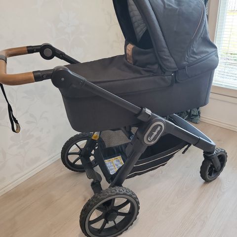 Tilava tavarakori. Vaunukoppa ja ergo istuin. Vaunukoppa siisti, patjassa aina ollut suoja. Istuimen saa helposti käännettyä kumpaan suuntaan tahansa ja istuimessa neljä eri kallistusmahdollisuutta, jotka näkyvät kuvissa. Istuimen kuomua helppo nostaa ylöspäin, joten sopii vielä isommallekin lapselle. Istuimessa helpot magneetilla kiinnitettävät vyöt, joita saa säädettyä kahteen eri korkeuteen.