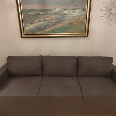Myydään todella hyvässä kunnossa oleva tummanharmaa vuodesohva. Sohvan leveys 145cm, istumakorkeus 42cm, syvyys 93cm