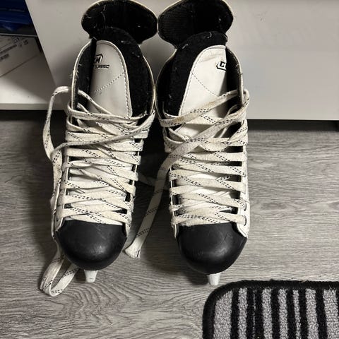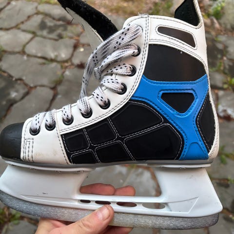 CCM lasten jääkiekkoluistimet, koko 38. Luistimissa musta ja valkoinen väritys sekä tukeva rakenne jääkiekkoiluun.