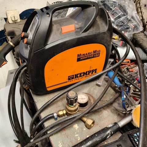Omatekoinen kärry, mutta hyvät renkaat, rullaa huonommallakin tallin lattialla.