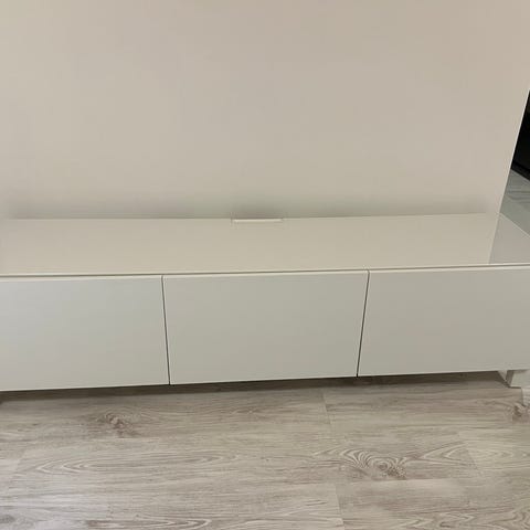 Ikea Bestä tv taso jossa päällä musta lasitaso. 180x42 Kuljetus onnistuu korvausta vastaan