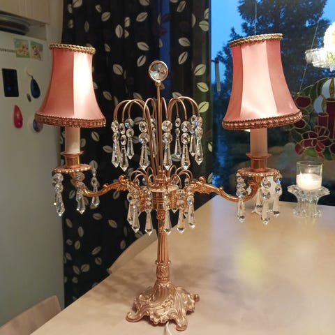 Kristalli pöytävalaisin. 42cm leveä, 47cm korkea.