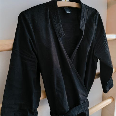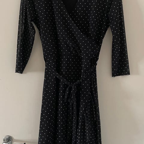 Materiaali laskeutuva polyesteri. Yläosassa vuori samasta materiaalista. Ostettu design mallistosta. S koko mutta väljän mallin ansiosta sopii myös myös M kokoon, myös odottavalla.