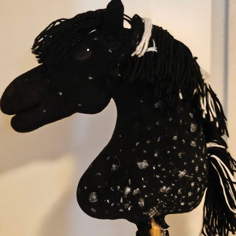 Keppihevonen. Kuvan suitset, naru ohjat mukaan. Hinta 5€.