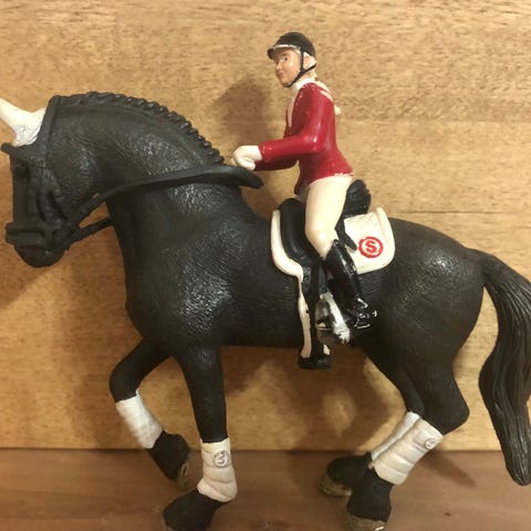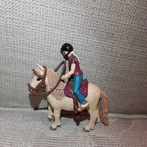 Myydään hyväkuntoinen Schleich ratsastaja Elina ja hevonen Nikita varusteineen . Ratsastajassa pieniä leikin jälkiä. Hevosessa enemmän leikin jälkiä. Katso kuvat. Postitus ok, kulut 6 eur.