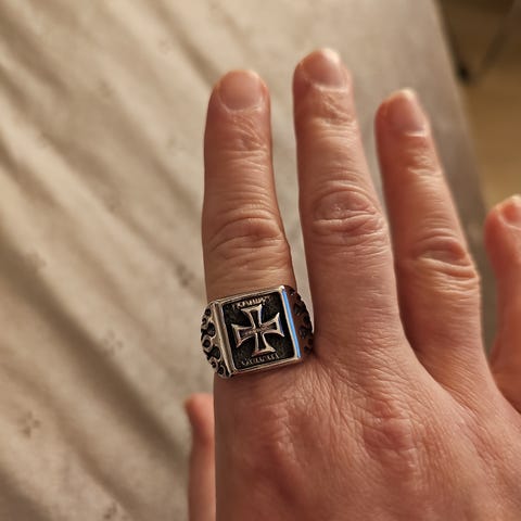 Uusi kullanvärinen terässormus kirkkaalla isolla kivellä. Koko 19 (9). Myytävänä myös muualla.