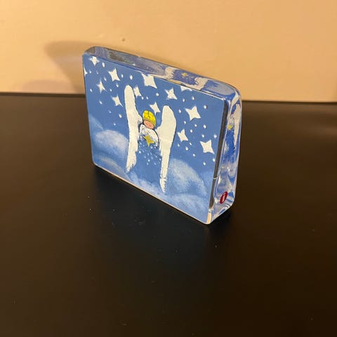 Heljä Liukko-Sundström lasikortti Ajatuksissa enkelin. Uudenveroinen, tarrallinen. Pk ostajalle.