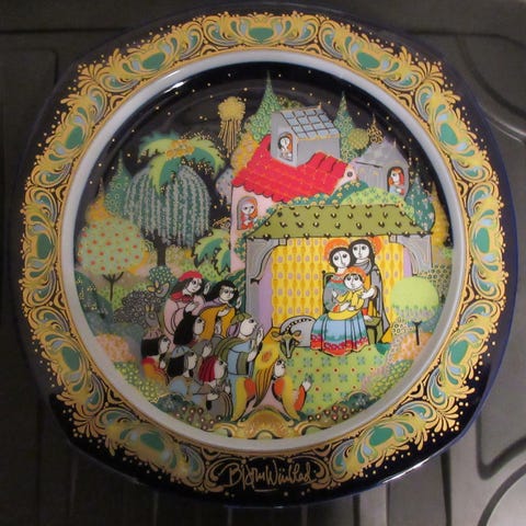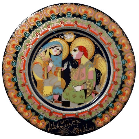 Björn Wiinblad, joululautanen v.1976, lasia, alkuperäispakkauksessa, ripustuskoukku.