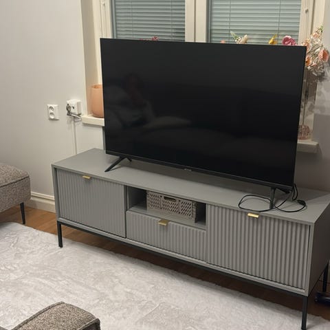 Usva tv-taso yhdistää vaalean tammiviilun ja mattamustan pinnan tyylikkäästi. Se sopii moderniin olohuoneeseen tarjoten runsaasti säilytystilaa ja selkeän skandinaavisen ilmeen. Materiaalina on laadukas MFC ja MDF sekä massiivipuiset tammijalat, jotka tekevät tv-tasosta kestävän ja helppohoitoisen.
