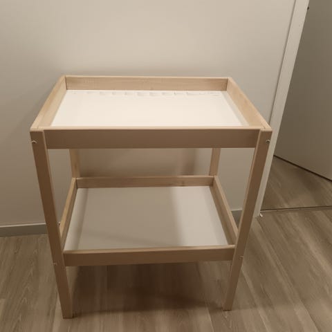Hyväkuntoinen Ikea Sniglar hoitopöytä. Kaupan päälle säilytyslokerot 3kpl. Nouto Tammisalosta Helsingistä