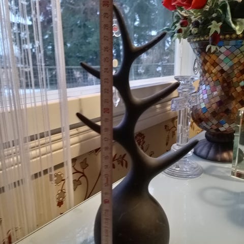 Myydään uudenveroinen, kaunis peuran muotoinen korupuu. Mahtuu hyvin kaulakoruja ja sormuksia kauniisti esille sekä helposti otettavaksi käyttöön. Materiaali muovi. Kaksiosainen. Väri valkoinen.