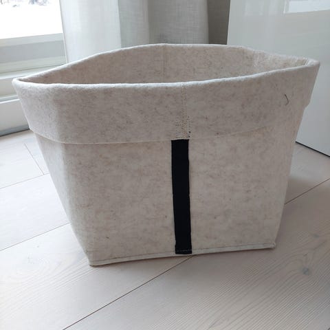 Mifukon uusi Kiondo hanging basket koko S. Koriosa valkoinen, hihna ruskea. Korkeus n 25 cm. Uusi ja käyttämätön, laput kiinni. Sopii vaikka lahjaksi. Savuton, eläimetön, hajusteeton talous.