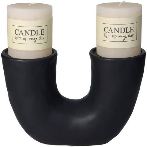 Leuk setti kahdesta mohairista kynttilänjaloilla.