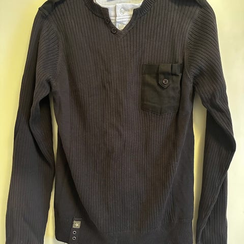 Uusi kelta-valko raidallinen pusero koko 152 cm.