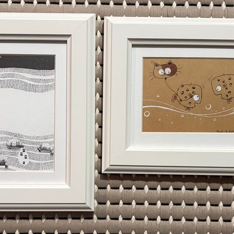 Kolme lintua taulussa! Siniharmaat ehjät kehykset myös kuvassa samat sävyt lasin alla (kuva von wrightin maalauksesta) Kuopio Pilkälahti.