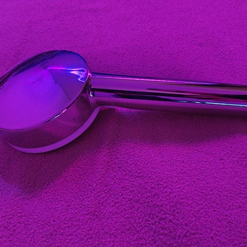 Säädettävissä kolme tehoa, mittaa lämpötilan ja vedenkulutuksen. Muuttuu punaiseksi, kun kulutus on ylittänyt 60 l. Toimii ilman paristoja.
