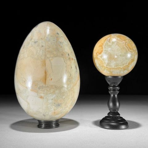 Ei varauksia hintaan - upea onyx-pari Pallot räätälöidyissä telineissä.- 2