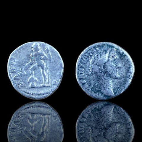 Trebonianus Gallus, 251–253. AR Antoninianus 3,09 g. Rooma, 251. IMP CAE C VIB TREB GALLVS AVG Sädehtivä, verhottu ja haarniskattu Trebonianus Galluksen rintakuva oikealle, nähtynä takaa. Takapuolella PRINCIPI IVVENTVTIS Apollo istuu vasemmalla, kädessään oksa ja lepää vasemmalla kyynärpäänsä lyyrän päällä, joka on asetettu valtaistuimelle. Cohen -. Eauze -. RIC -. Erittäin harvinainen ja ilmeisesti julkaisematon, suurella mielenkiinnolla. "Tämä mielenkiintoinen hybridi-eri yhdistää Trebonianus Galluksen etupuolen Herennius Etruscuksen (RIC 146) tai Hostilianuksen (RIC 180) takapuoleen." kuten Leu Numismatik Web Auction 25, erä 2391.