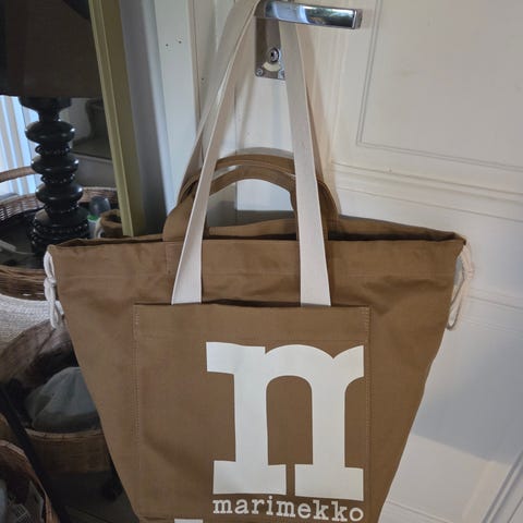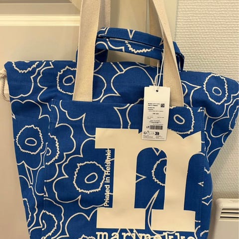 Marimekon reilun kokoinen tote laukku. Laput kiinni