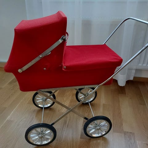 Myydään nukenvaunut. Säilytetty varastossa, vaatii putsausta. Kuomun takaosa ei pysy kiinni kunnolla rungossa (kuminauha "väsähtänyt").