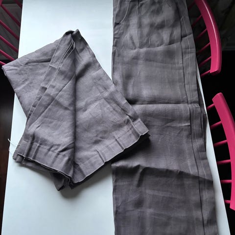 Myydään kuvassa näkyvät Eurokankaassa Ginger-pellavasekoitekankaasta teetetyt verhot. Verhoissa on wave-verhonauha.