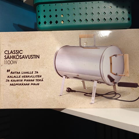 Grillilinja sähkösavustin teholtaan 1100 W. Sähkösavustin on valmistettu metallista ja soveltuu savustamiseen kotikäyttöön. Laitteessa on virtajohto ja se on suunniteltu käytettäväksi sisä- tai ulkotiloissa savustukseen.