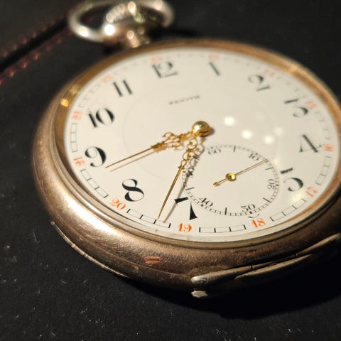 Vanha Zenith hopeinen taskukello 1900 luvulta. Halkaisija 52 mm. Hopeamerkintä 800. Pitkän seisonnan jälkeen kello lähti heti käyntiin kun jousi vedettiin. Varjopuolina on kellotaulussa no 4 kohdalla oleva vaurio ja takakannen lukituksen tiukkuus. En tiedä onko kellotaulun vaurio tyypillinen tälle kellolle sillä netissä löytyy muutama Zenith kelloa samoilla vaurioilla samassa paikassa. Kellokoneisto tuntuu olevan kunnossa vaikka on seissyt monta vuotta.