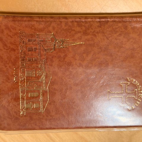 Suomen evankelis-luterilainen kirkko Virsikirja, kirja suomenkielisillä virsillä. Sisältää kirkollisia virsiä ja rukouksia. Kovakantinen, ruskea nahkakansinen kirja.