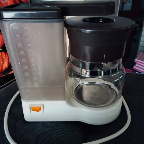 Paulig kahvikone, väri valkoinen ja musta. Laite on tarkoitettu kahvin valmistukseen, varustettu vesitankilla ja käyttöliittymällä etupuolella.